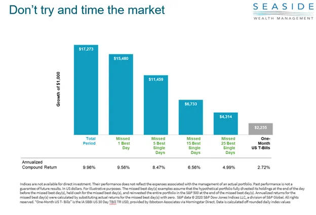 Despite all the data, some people may still be thinking they should go to cash until after the election to see who wins and then reinvest. What is so wrong with that? It is a good question. Our strong preference is to stay invested rather than to try and time the markets. If you try and time the markets, you must be right twice. You have to be right once when you get out and then again on the way back in. The reality is, we do not know anyone who can make those calls correctly with consistency. We also know that missing just a few days of strong returns can drastically impact your long-term performance. If you look at the performance of the S&P 500 from 1990 through 2019 you can see how different your outcome would be if you missed just a few of the best days. These returns can come at any time and may not come together. If you miss them because you were trying to time the market your long-term goals could be severely compromised.