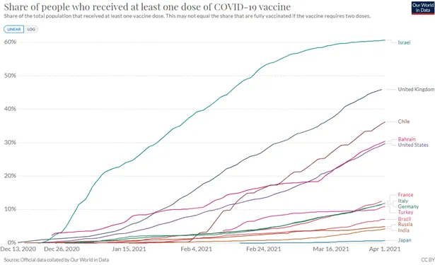 We have continuously spoken about this from the perspective that Covid-19 is a health crisis that created an economic crisis, which really does make it different from previous downturns. And there are a lot of encouraging signs, though it would be too early and irresponsible to give the “all-clear” signal. In early November 2020, we received the first news that vaccinations were effective in global trials. Since then, the rate of vaccinations globally has steadily increased, though is still very inconsistent from country to country. Interestingly, the inconsistencies aren’t even consistent across developed and emerging countries.