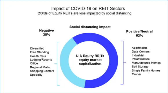 Per the analysis done by Nareit and shown in Exhibit 5, just less than 2/3 of REIT sectors as measured by market cap are considered to be less impacted by social distancing and includes REIT sectors like data centers, manufactured homes and self-storage facilities.